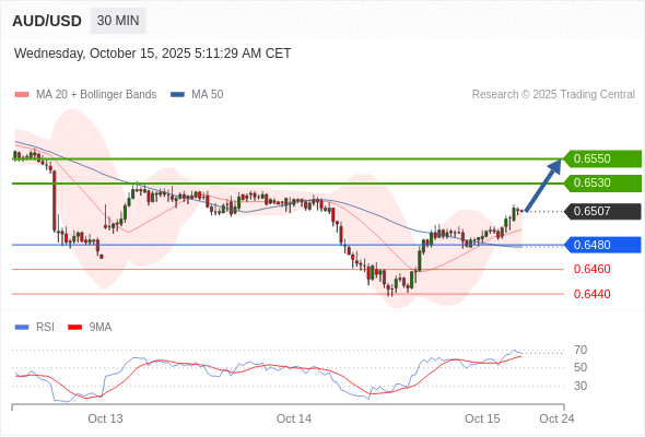 在 0.6480 之上,看涨,目标价位为 0.6530 ,然后为 0.6550 。
