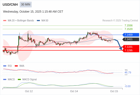 技术点评: RSI技术指标小于中性区域50。 MACD技术指标处在其信号线之下看空。 配置为负。 此外,价位低于其20天及50天移动平均线 ( 分别位于7.1413 和7.1424 )。